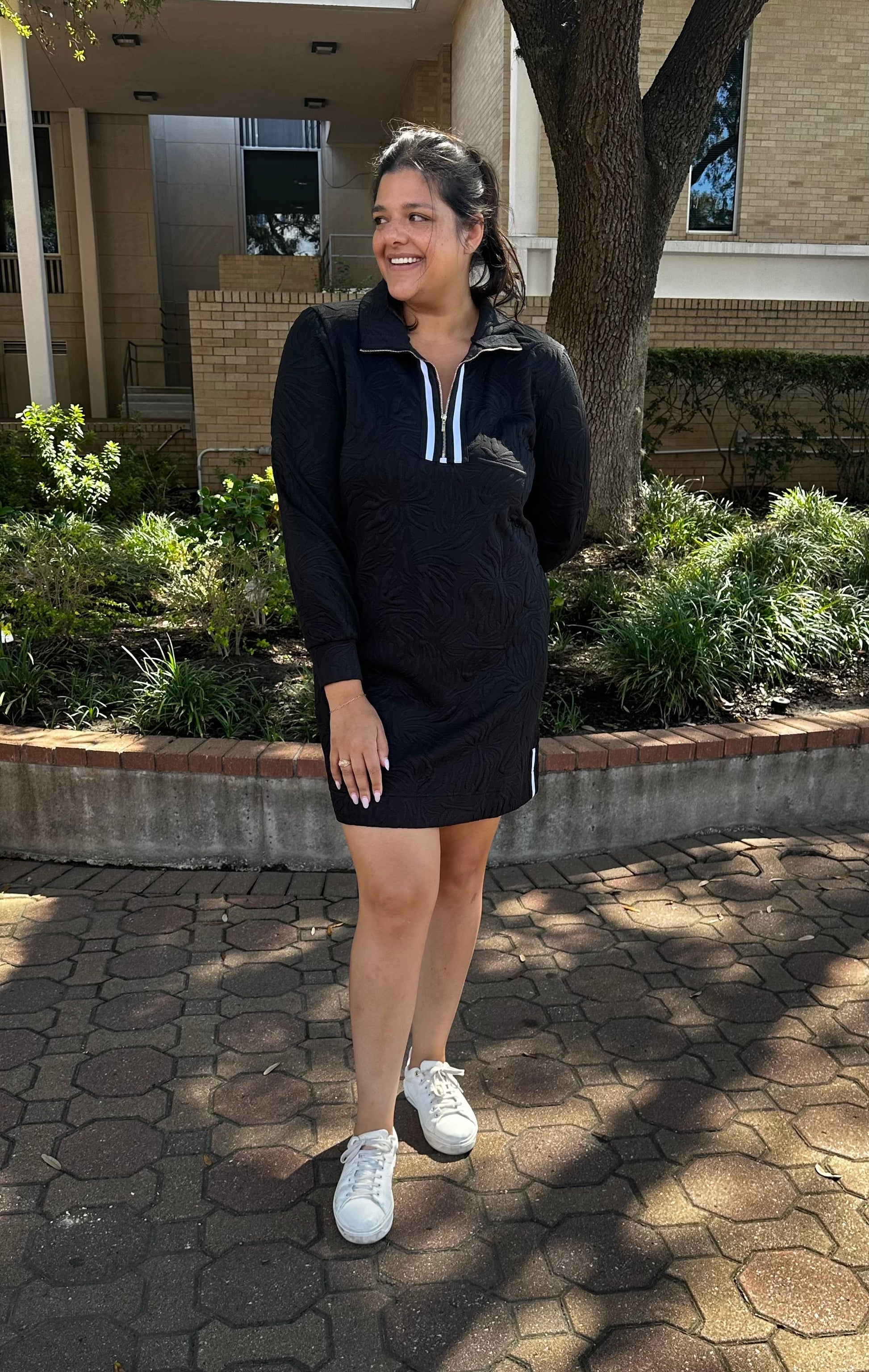 The Aspen Dress is your new go-to for cozy days with a touch of edge. With textured quilted detailing, a sporty zip neckline, and a relaxed sweatshirt silhouette, this dress blends comfort and cool in one chic piece. Style it with sneakers for weekend errands, or layer it with boots and a jacket for a night by the fire. Either way, this one makes lounging look luxe.